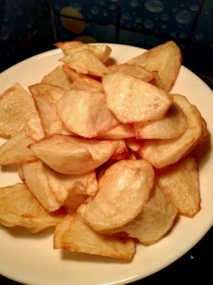 注意:油温要高才能炸好,蔬菜要炸熟,土豆块不要太厚。汤汁里放少许清水,翻炒要快!