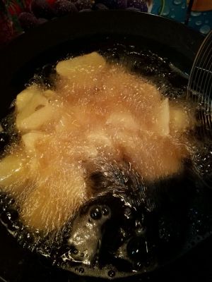炸土豆 ⚠️小火煎炸均匀 成金黄色捞出沥油