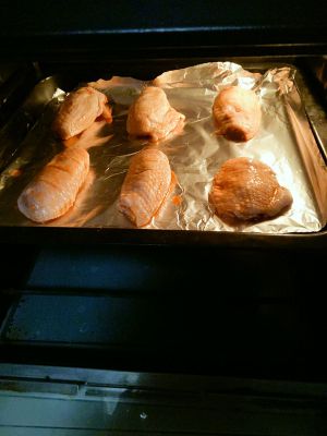 15分钟后取出来,涂上第二次蜂蜜,翻面,在烤10分钟。