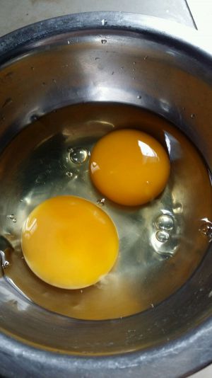 两颗鸡蛋打散,把馒头块都倒在鸡蛋里。裹均匀。