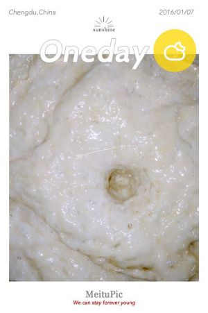 大概一个小时以后,面团就发酵成原来的一倍大,且有许多气孔,这就证明发酵好了!