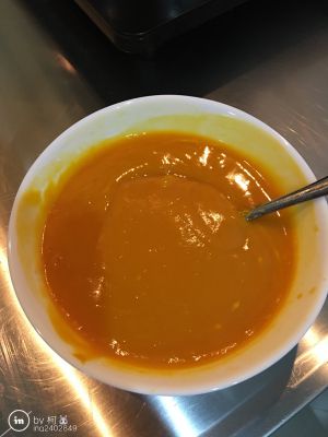 图四:南瓜泥成品,流动的泥状就好啦!喜欢南瓜粥的做到这步就可以开吃了[嘿哈]