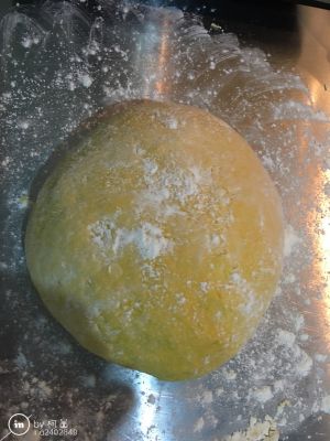 图五:将酵母,糖放进南瓜粥里,粥不能烫手,否则酵母君就嗝屁了!搅拌均匀静置五分钟。
