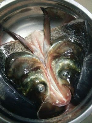 胖头鱼去鳞洗净后,将头与鱼身分开。