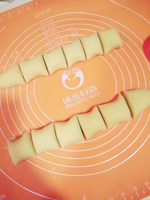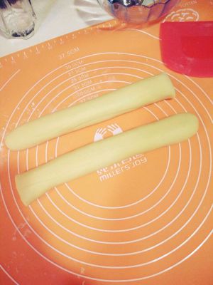 馒头的大小按自己的喜欢,取出一部分面团揉成圆柱形长条状。