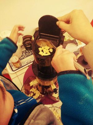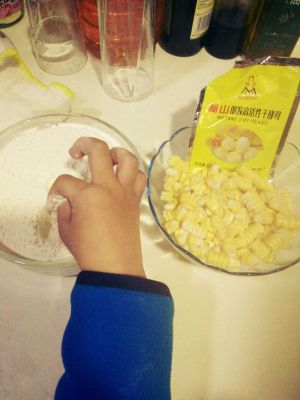准备食材,很简单,玉米剥粒,请忽略那只好奇的小手