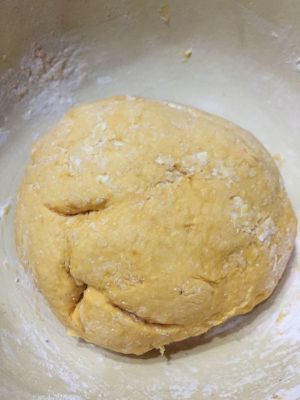 揉面,橘色面团准备完毕。颜色不如实物明显