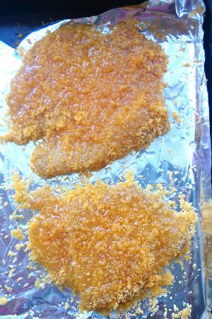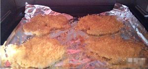 入烤箱中层,上下火170度,5-8分钟左右。时间要根据鸡排的厚薄和烤箱内实际炉温适当增减