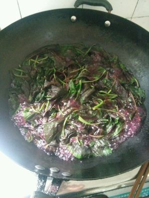 苋菜放锅里加点水煮出汤汁,捞出苋菜,倒出汤汁待用!