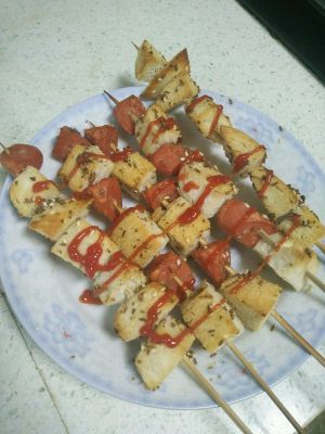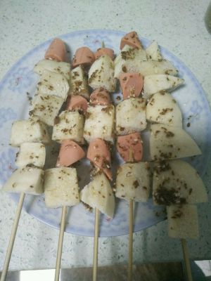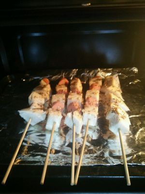 上下火200度,烤20分钟。中途可以刷点油,翻翻串。