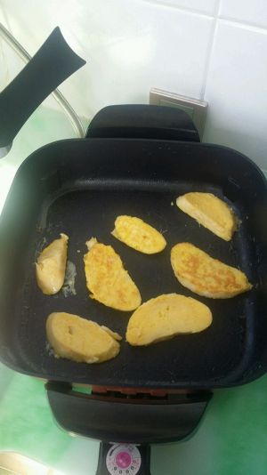 当当当当。美味的馒头片出炉了!(因为馒头片少,蛋液剩下了。所以我把馒头片煎一遍之后又滚了滚蛋液,再放锅里煎了煎,省的浪费!)