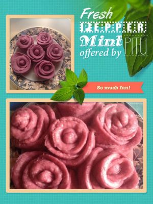 整理花朵到大盘,留出空隙,我第一次做没有想到! 放入蒸锅30分钟 一盘美丽的紫玫瑰!营养价值很高哦!