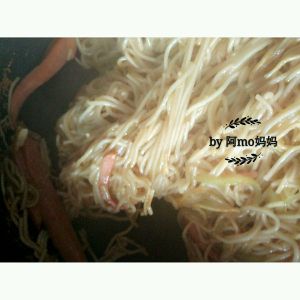 面条煮好后过冷水备用,将食材混在一起炒