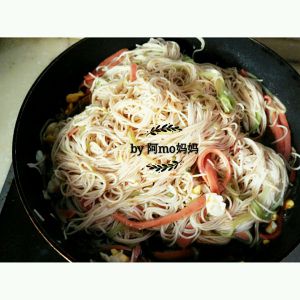 炒到面条外皮微微发脆,就可以关火