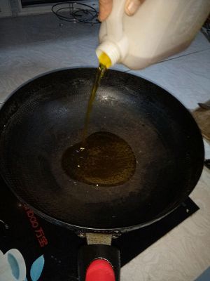 油加热放点胡椒粒爆锅,再放入姜葱蒜爆锅