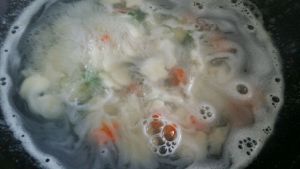 锅中加清水烧沸放面条煮熟。