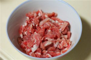 肉丝用料酒,生抽,淀粉腌制,热锅烧油,小火翻炒变色