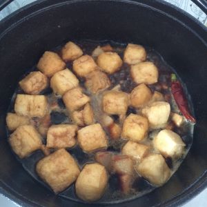 放入炒锅加入豆腐,稍微盖几分钟锅盖,用肉里面的汤汁炖一会豆腐记得加盐哦,盐在汤汁的辅助下会散开的更均匀。。差不多五六分钟就可以打开锅盖,大火收汁,加入之前准备的碎蒜。香喷喷出锅咯。开吃吧。
