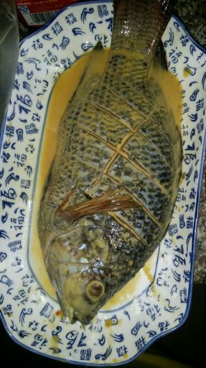 料酒,酱油,盐,鸡精,生粉均匀的抹在鱼身上腌制10分钟待用,生粉要多点。