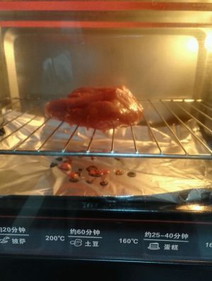 腌好的肉取出来,放网上风干了再放进烤箱里烤。200度烤30分钟,期间涂蜂蜜,最后5分钟最好涂一下才出炉