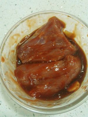 腌好的肉用保鲜袋包好放冰箱腌24小时,等肉入味,期间最好翻动一下