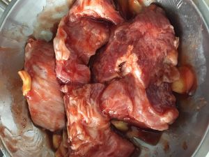 肉放入腌制,24小时(我腌了48小时,因为忘了