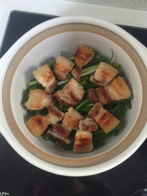 煎肉的时候,胡萝卜洗净,切小块,肥肉快煎干的时候,加胡萝卜,再继续翻炒,加豆瓣,继续炒。然后加水,淹过肉和胡萝卜。
