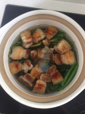砂锅内铺一层姜片,一层香葱
