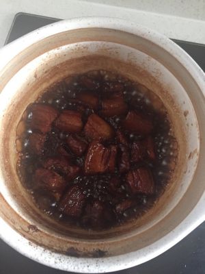 半小时后加糖,原来的作者是加的冰糖,我加的红糖,大约2斤肉1-2两糖,看自己口味了! 大火收水,收得差不多了的时候,起锅,那叫一个舒服!