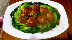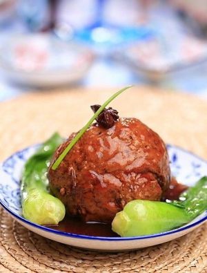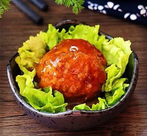 吃的时候,把狮子头放捞出放到盘中,取一些炖狮子头的汤汁,勾个薄芡,浇在狮子头上即可。