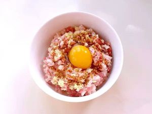 五花肉糜加马蹄,生姜,加盐老抽,一个鸡蛋,淀粉,胡椒粉顺时针搅拌
