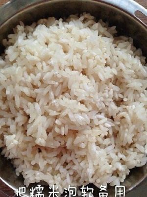 将糯米提前一夜淘洗后浸泡,捞出沥干水分备用。
