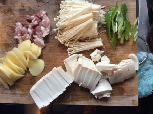 将五花肉切片(原谅我不会切片),各类食材处理好