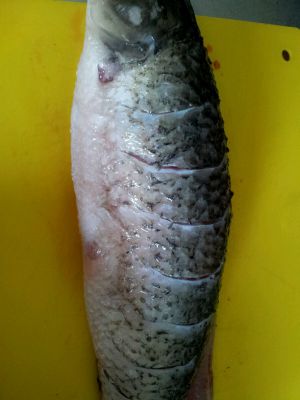 将草鱼(鲤鱼、草鱼、罗非鱼均可)刮鳞、开膛破肚(在市场买鱼时可要求商家处理好),用流动水反复清洗,鱼腹内的黑膜一定要清洗掉,否则腥味重。