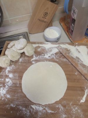 揉面醒面,分成小剂子准备烙饼。