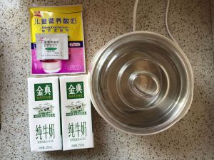 准备原材料,2盒纯牛奶,1小袋菌粉(酸奶发酵剂),酸奶机一台