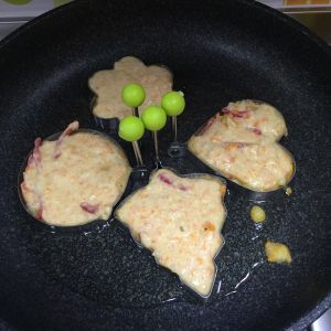 热锅冷油,中小火加热,不用模具可以烙成一整张,吃的时候切开。不要太厚,不容易熟。一面成型后翻面烙。怕不熟可以用筷子扎扎看。