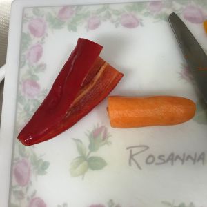 煮土豆的时间,可以把各种时蔬切碎,红椒我会切成丝,其他可以放料理机打碎。你如果用香肠,虾这些,最好切成丁。
