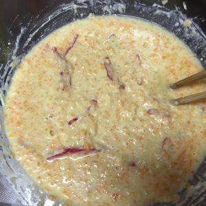 根据口味放盐,放蛋,面粉,搅匀,成稠的面糊
