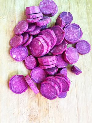 取出摆盘,就这样完成啦……没有烤箱的伙伴,也没有关系,这个紫薯饼放平底锅煎着也很好吃。或者蒸着吃更健康呢……