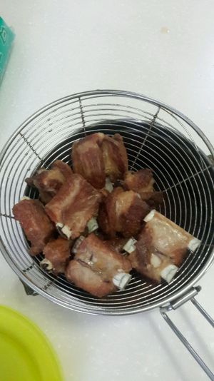 排骨切段洗净,加入少许姜片.十三香.生抽.酒.盐淹渍两小时
