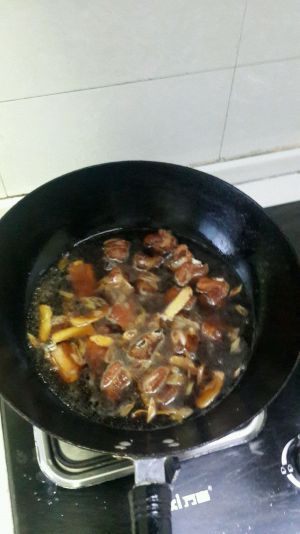 将切好的姜放入锅中抄香,加入比例为1:1的醋和白砂糖,将排骨放入炒香后加水淹没排骨