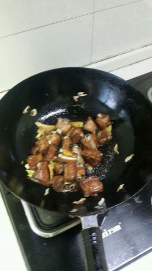 将排骨倒入锅内煸炒,放料酒继续煸炒