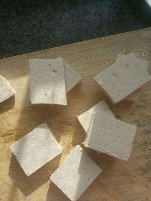 白豆腐切成如图长方形,正方形都可以。看个人喜好~