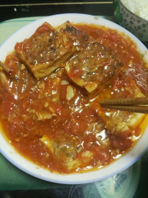 锅里加油,水,豆瓣酱,盐等,煮开,将豆腐放进锅,继续煮几分钟。出锅,装盘,搞定!
