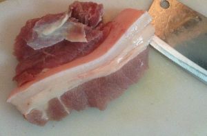 放入碗中,加入一勺橄榄油,1克盐,1勺生粉,1勺蚝油将瘦肉拌匀。