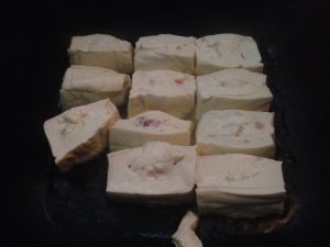 豆腐切块挖心 (挖掉的可以和肉馅混合)