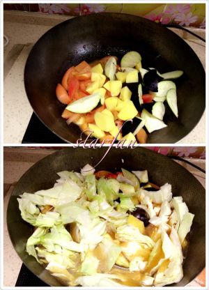把茄子土豆胡萝卜扁豆一起炖15分钟