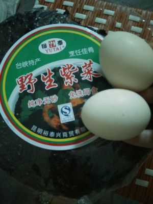 一包2元钱的紫菜分四五份,取一份洗净备用