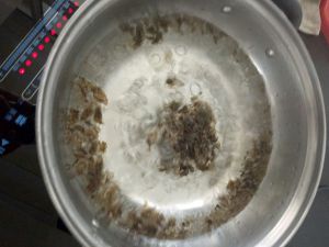 我用了两个鸡蛋,直接打在锅里的,再用筷子搅拌